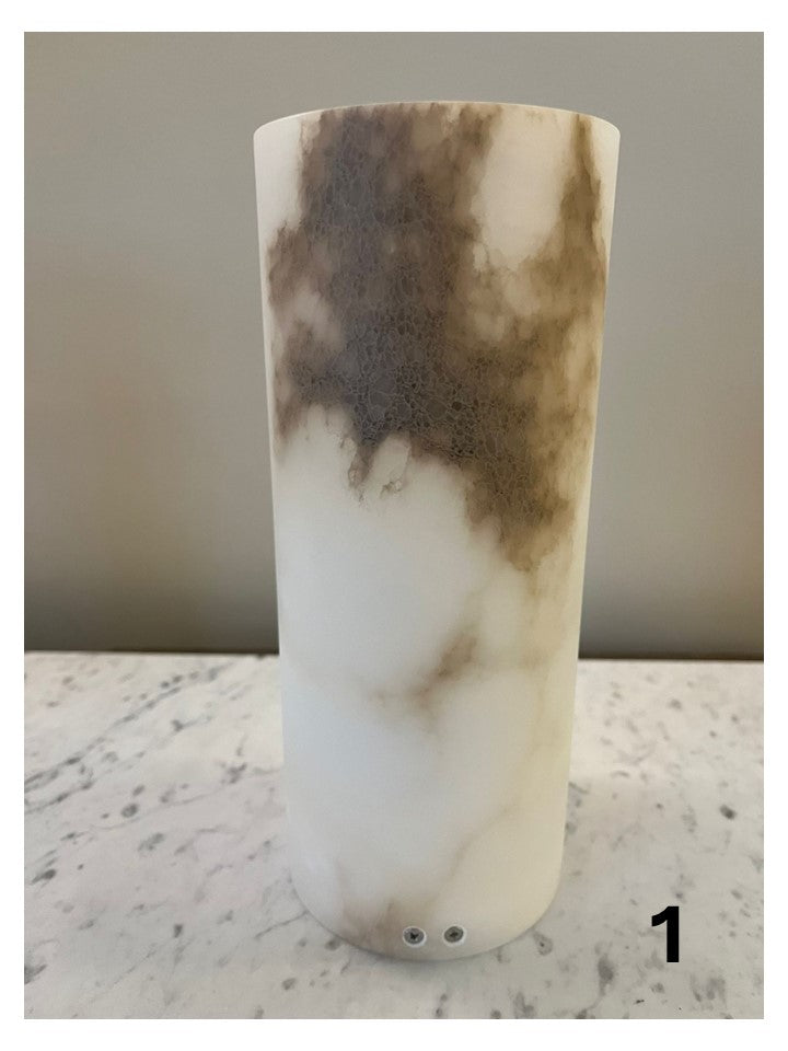 All pieces are sold as seen. Last of batch before design update, some heavy marbling in alabaster.